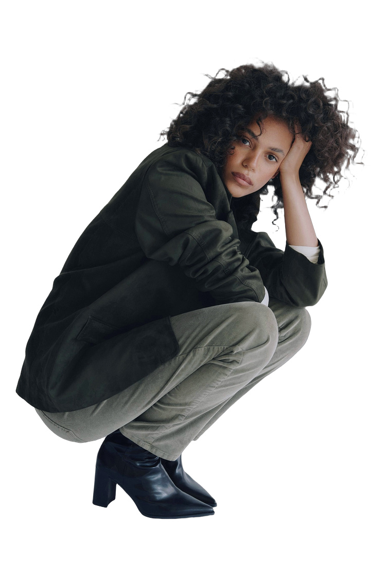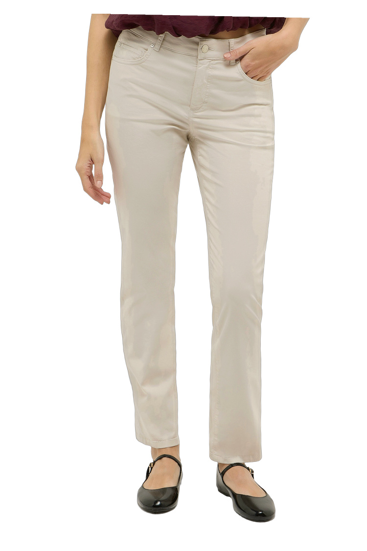 Eine Damenhose mit schlanker, körpernaher Passform. Erhältlich in zwei Materialvarianten: weicher Cord aus Baumwollmischung oder elastischer Denim. Der Schnitt ist an Hüfte und Oberschenkel figurbetont, das Bein fällt gerade.